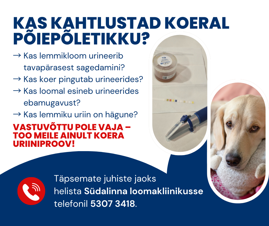 👉 Meil on aga hea uudis: kui kardad, et koeral võib olla põiepõletik, ei pea temaga alati kohe vastuvõtule tulema – saad uriiniproovi lihtsalt meile kliinikusse tuua. Täpsemate juhiste jaoks võta Südalinna loomakliinikuga ühendust telefonil 📞5307 3418📞. Nii saab lemmikloom kodus soojas ja kuivas olla ning omanikul on vaja ainult analüüsi tulemusi ja edasisi ravijuhiseid oodata.